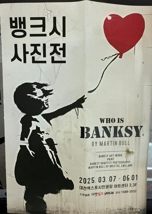익명의 거리 예술가 뱅크시 작품을 촬영해온 마틴 불(Martin Bull)의 사진전이 대전에서 열린다.올해 3월 7일부터 6월1일까지 대전엑스포시민광장 아트센터 2, 3층에서 '뱅크시 사진전'이 열린다.뱅크시는 익명의 예술가로 블랙유머와 패러디가 강력한 무기다. 영국 출신의 뱅크시는 실제 얼굴, 본명, 나이를 전혀 공개하지 않고 벽에 낙서처럼 그림을 그려왔다. 그의 그림은 낙서를 넘어 예술로 평가 받으며 사람들의 주목을 받아왔다.그의 그림 주제는 전쟁 반대, 폭력과 감시체제에 대한 저항, 세태 풍자, 현대 소비문명 비판 등 묵직한