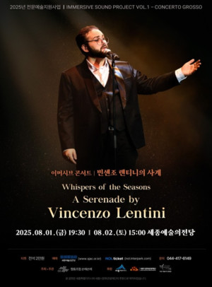 한여름의 8월, 세종에서 이머시브 콘서트 가 펼쳐진다.세종예술의전당은 8월 1일과 2일 세계적 테너, 빈센조 렌티니 공연이 열린다고 23일 밝혔다.이번 공연은 이탈리아문화원의 후원으로 마련된 한-이탈리아 문화예술 교류 프로그램이다. 공연에서는 이탈리아 공식 문화대사로 임명된 테너 빈센조 렌티니와 엘렉톤 연주가 한지연, 무용수 홍지현이 함께 한국인이 사랑하는 이탈리아 명곡들을 소리와 움직임으로 선사할 예정이다.빈센조 렌티니는 한국, 일본, 중국 등에서 활발한 활동을 펼치며 아시아와 이탈리아를 잇는 역할을 하고