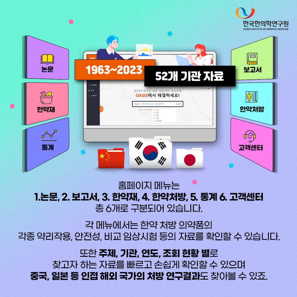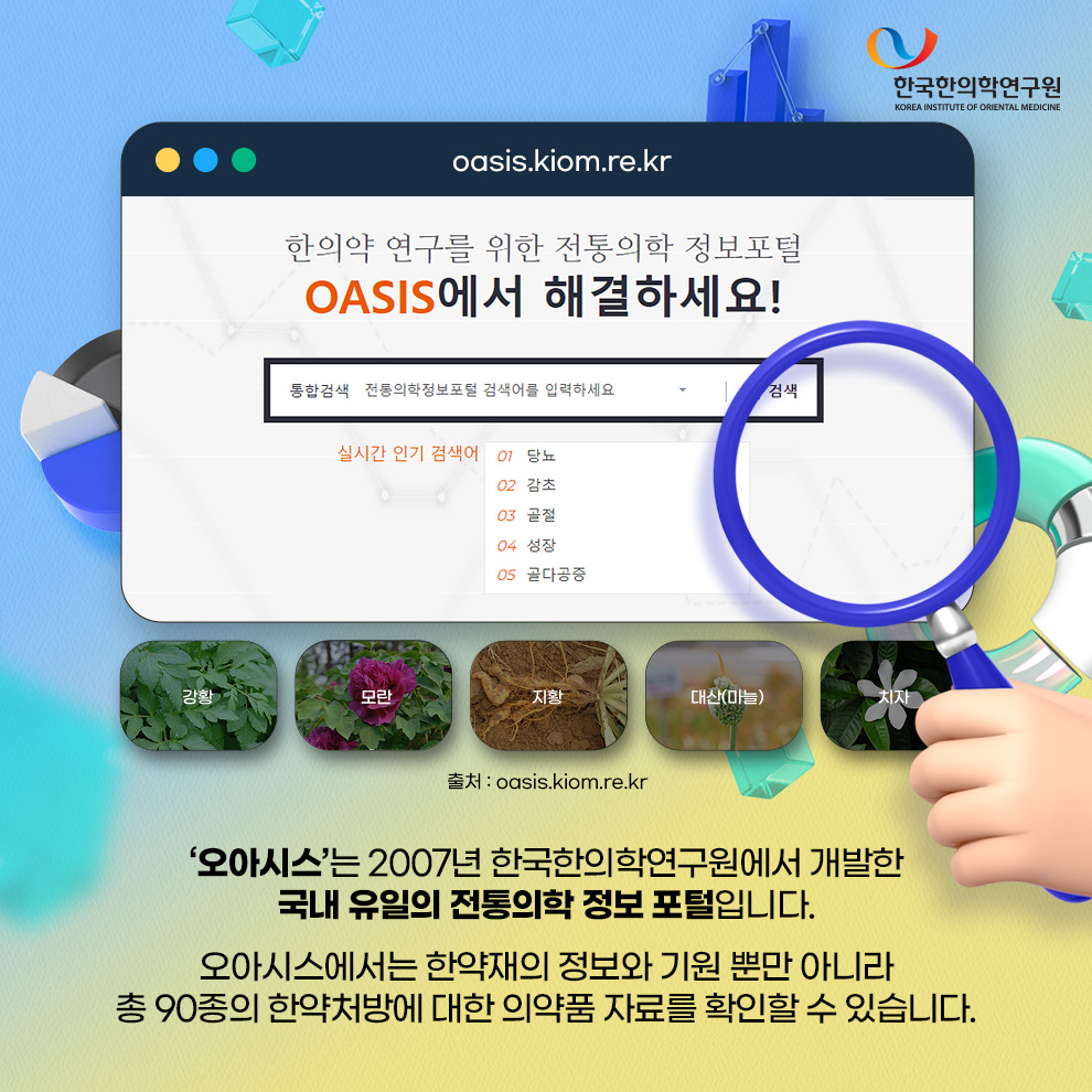 한국한의학연구원이 개발한 한의학의 오아시스! 국내 유일의 전통의학 정보포털 오아시스(OASIS)를 소개합니다.