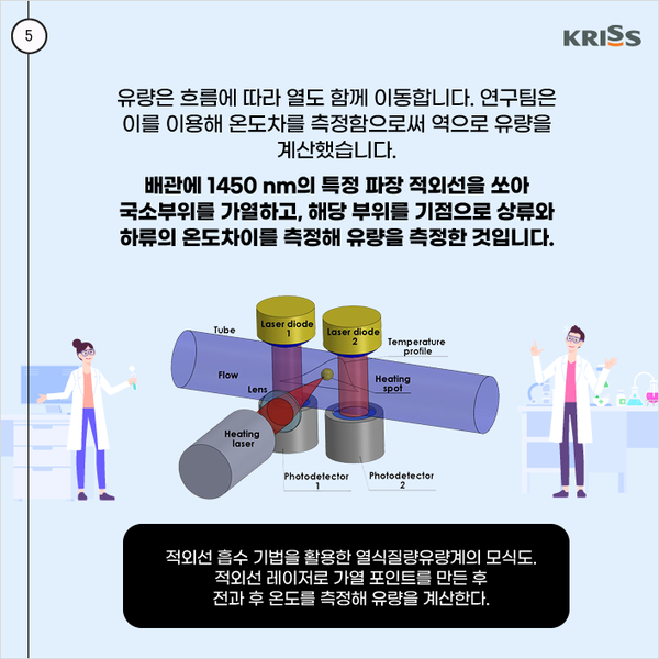이석환 표준연 박사팀이 적외선 흡수 기반 열식질량유량계를 개발해 이 문제를 해결했습니다. 약물주입기 배관을 훼손하지 않으면서 미세한 약물 투여량 차이를 실시간으로 확인할 수 있게 되었습니다.